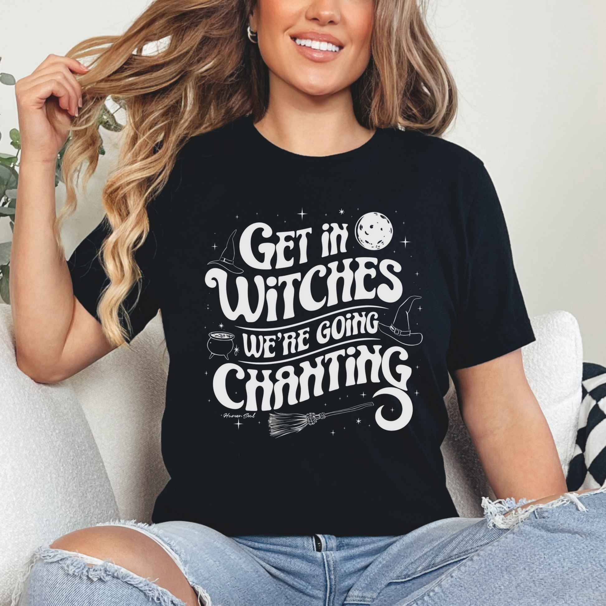 Chant on with our 'Get In Witches, We're Going Chanting' t-shirt. Featuring cool witchy elements, this tee is perfect for those who embrace their mystical side and enjoy magical vibes.
