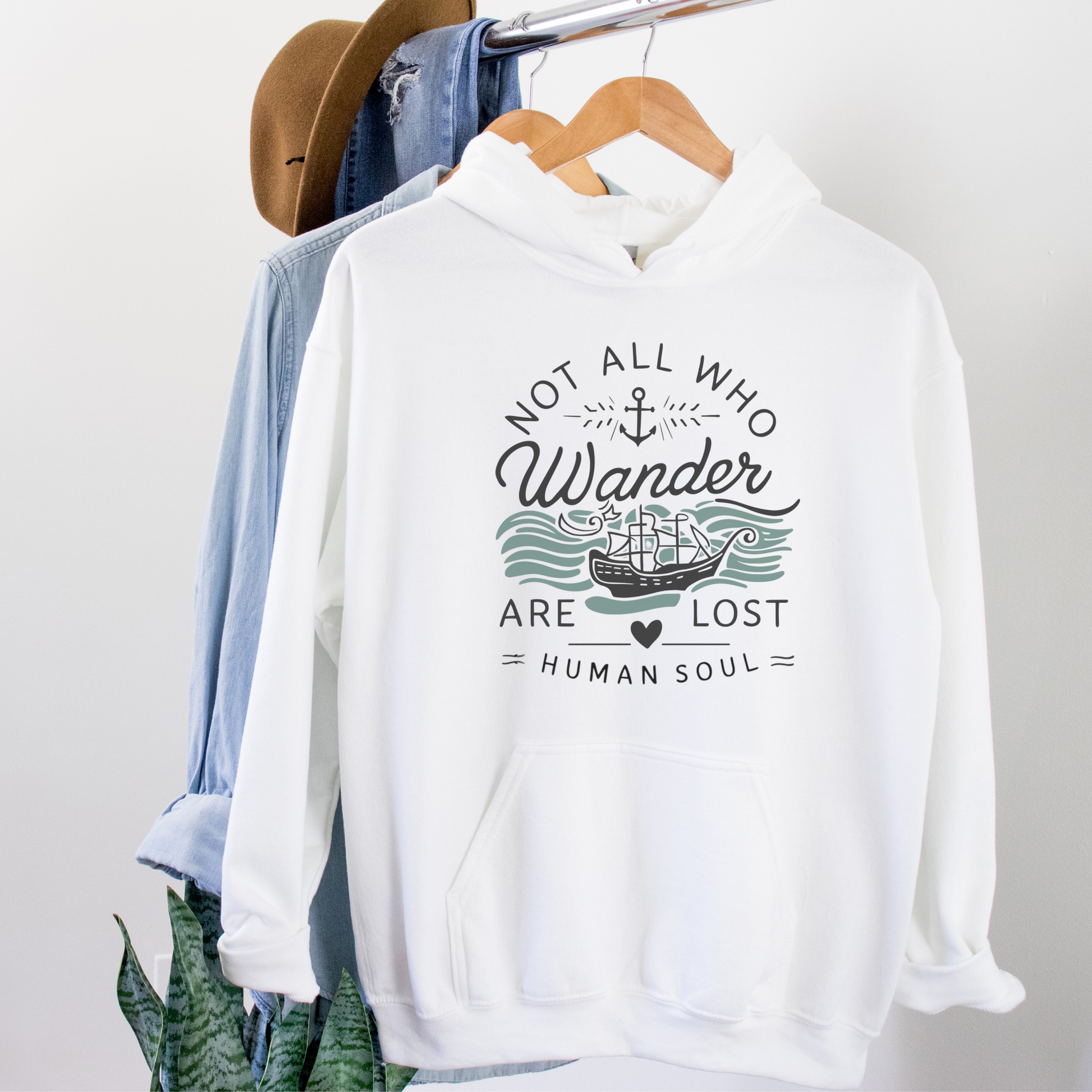 Set sail with our 'Not All Who Wander Are Lost' ship and anchor hoodie. Featuring a wandering ship at sea, this cozy hoodie is perfect for adventurers and dreamers who embrace the journey of life.