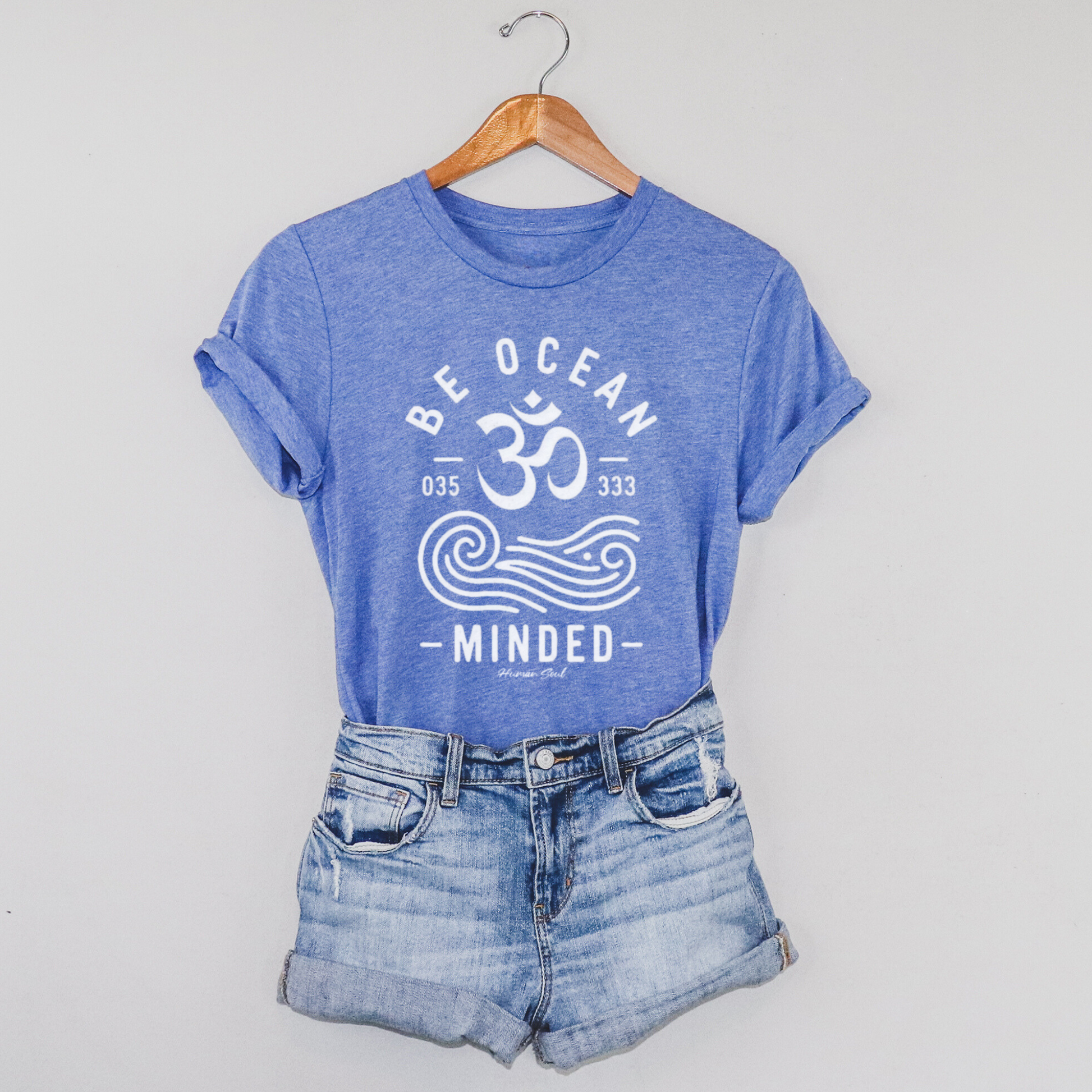 Flow with the tide in our "Be Ocean Minded", featuring an ocean wave and Om symbol. This shirt is a reminder to stay grounded, connected, and in tune with the rhythms of nature. Perfect for those who embrace both the sea and their spiritual journey.