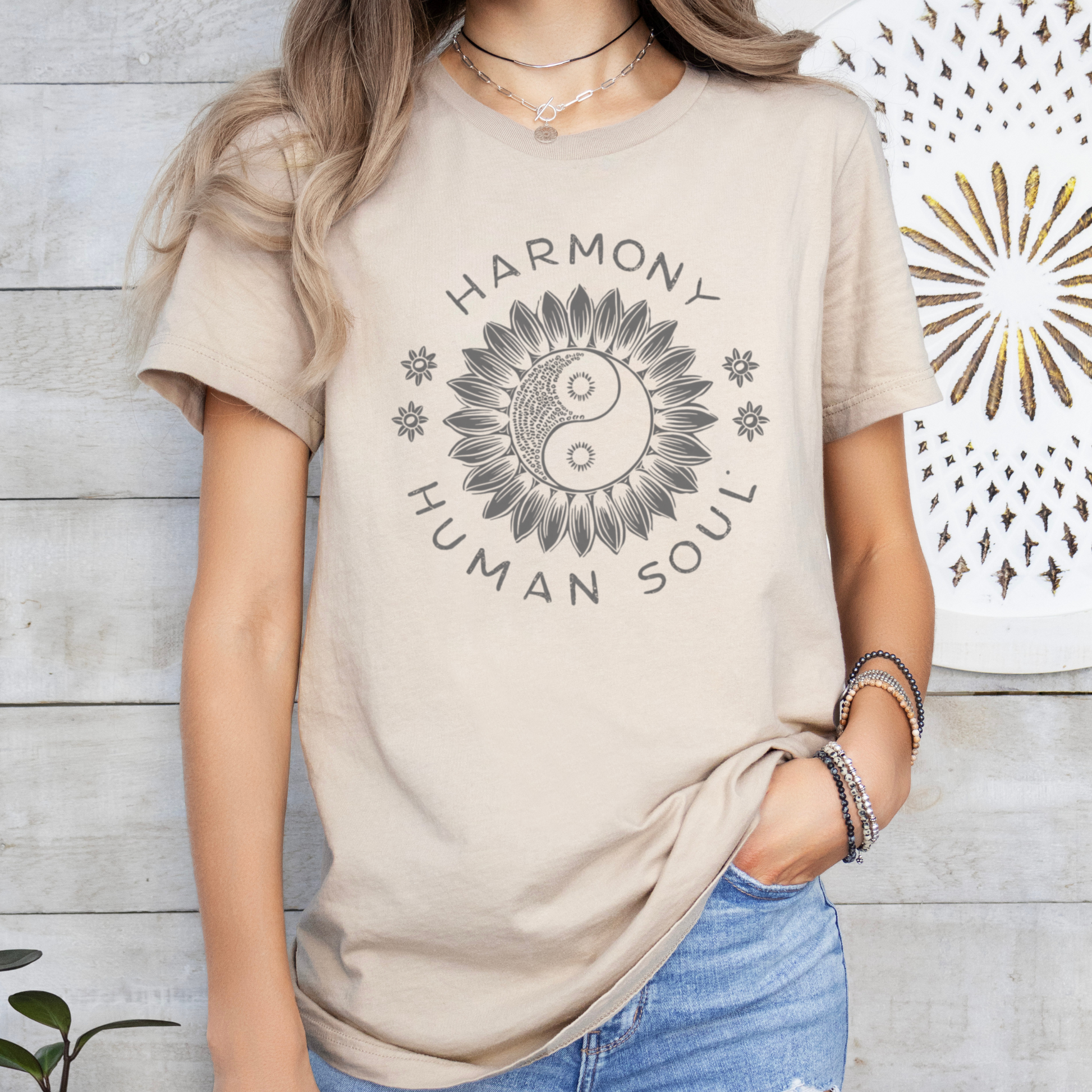 Bring balance to your style with our "Harmony" t-shirt, featuring a yin yang sunflower design in subtle grey tones. This tee is all about finding peace and equilibrium, making it perfect for those who embrace harmony in all aspects of life.